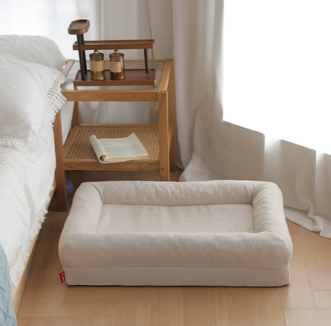 Cama rectangular de espuma sólida para perros con espuma viscoelástica extraíble y lavable rodeada de cuatro paredes para mascotas